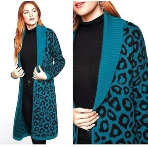 BCBGeneration Leopard-Print Shawl-Collar Long Cardigan