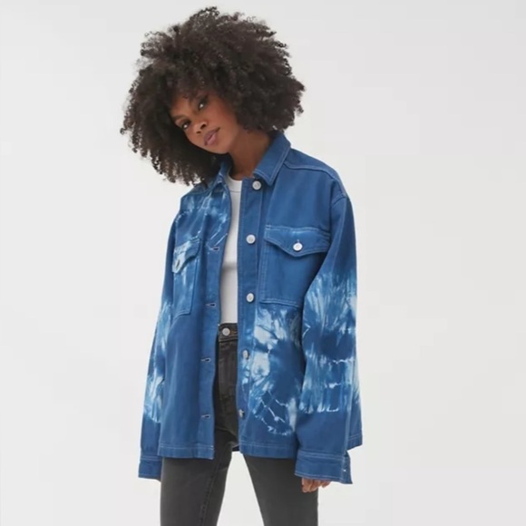 NWOT BDG Urban Outfitters Oversized Blue Denim Tie-Dye Jean Jacket Women’s XS