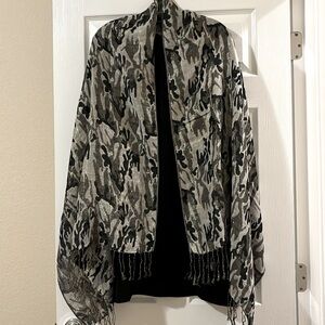 NWOT BEAUTIFUL BLACK, GRAY WITH GOLD SHIMMER SHAWL / SCARF