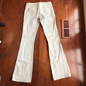 NEW WITHOUT TAGS BEBE KAYLA CHAINED EMBROIDERED JEANS, size 30. These jeans are a grey/silver color. 5 pocket jeans with back pocket embroidery. Jeans have an approximately 32 inch waist and approximately 8 inch rise. Inseam measures approximately 33.5 inches. Straight leg jeans perfect for dressing up to go out, or a casual look. 98%cotton, 2%spandex.
