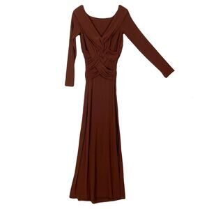 NWOT BEN DE LISI Dress US 6 Black Maxi Boat-Neck Cross Ruch Slit Side Stretch