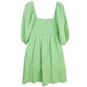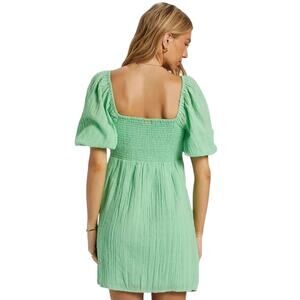 NWOT | BILLABONG Smocked Dress sz S Green Cotton Gauze Puff Sleeve Twist Front