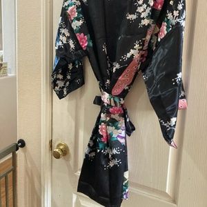 NWOT BLACK FLORAL BRIDESMAID ROBE