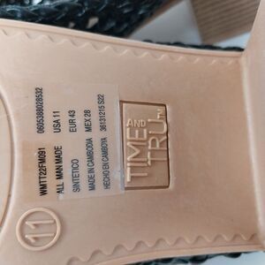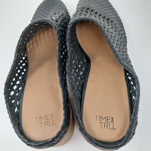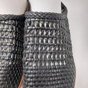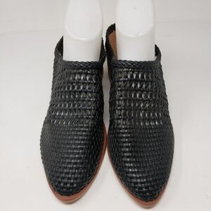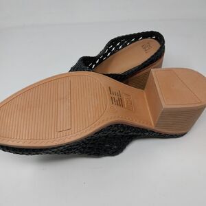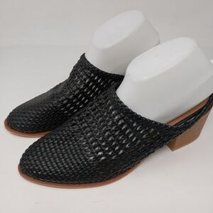 NWOT. BLACK OPEN WEAVE HEELED CLOGS. FAUX LEATHER. SIZE 11. HEEL HEIGHT IS 2.5".