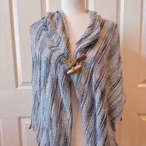 NWOT BLUE CAPE WITH WOODEN CLOSURE ONE SIZE FITS MOST