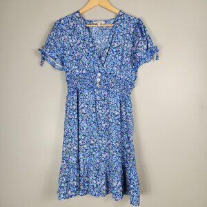 NWOT BLUSH Floral V Neck Ruffle Sleeve Dress