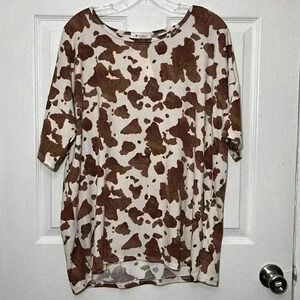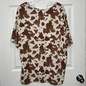 NWOT BOMBOM Animal Print Brown and White Loose Knit Tee | size XL