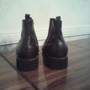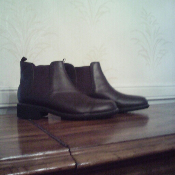 Dark Brown. Leather uppers, balance man made materials. Elastic stretch built in uppers.1.5" heel