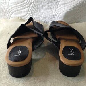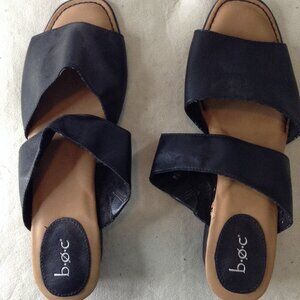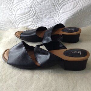 NWOT BORN/BOC Black Faux Leather "11M" 2" block heels, slide sandals; Classic