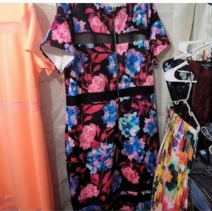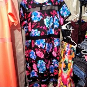 NWOT BOUTIQUE FLORAL NEON MESH DRESS 2x