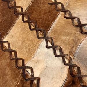 Beautiful Fur & Leather NWOT handbag. This unique & stunning handbag is absolutely beautiful! Never used!! Bag exterior is hand stitched with deep chocolate leather over multi color fur. Large interior is perfect with golden mustard color lining complete with leather phone pocket and interior pocket with zip enclosure. Statement leather tassel with bronze hammered heart charms. Classic handbag is unmistakably rich in quality and status. Bag retails for $880.