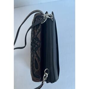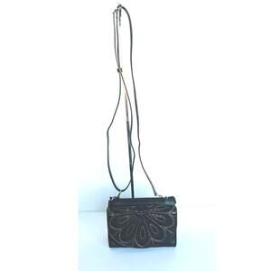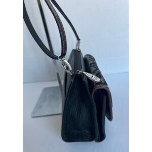 NWOT BRIGHTON 3D Flowered Black Brown Pebble Leather Crossbody Clutch Purse