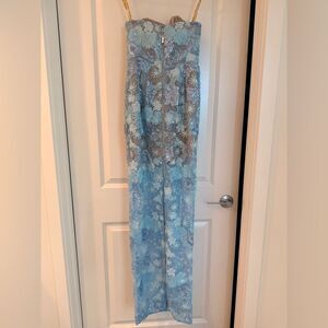 NWOT BRONX AND BANCO Farah Ocean Blue Sequin Multi Strapless Maxi Dress