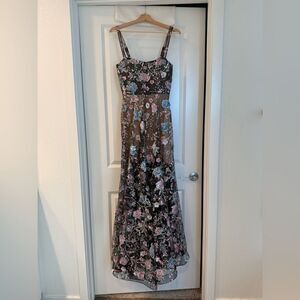 NWOT BRONX AND BANCO MIDNIGHT EMBROIDERED FLORAL GOWN