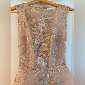 This sequined dress is absolutely gorgeous, with sequins that reflect different colors from various angles, shimmering with dazzling brilliance.