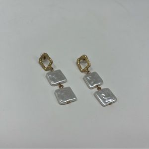 NWOT BRUSHED GOLD PEARL SQUARE DANGLE STATEMENT FASHION EARRINGS