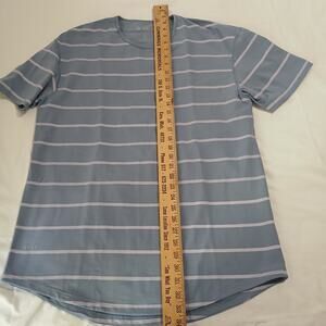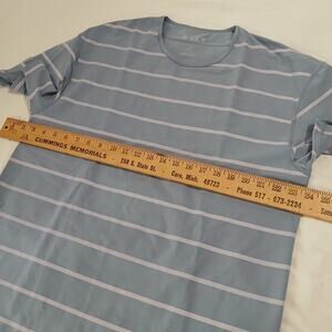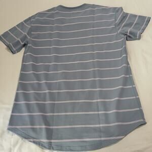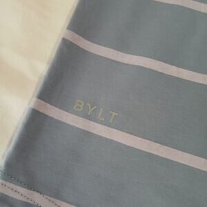 Update your wardrobe with this stylish NWOT BYLT Drop Cut Short-Sleeved LUX T-Shirt! This high-quality tee, made from a comfortable cotton/poly blend, is perfect for a trendy, casual look. The baby blue color, with thin white stripe, adds a pop of style to any outfit.