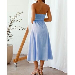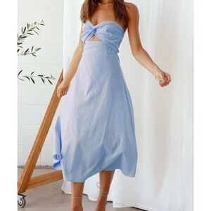 NWOT Baby Blue Strapless Midi Dresses Linen Dress