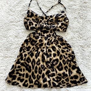 *NWOT* Baby Doll Padded Cheetah Print Cut Out Dress W/ Adjustable Straps Sz Sml