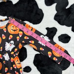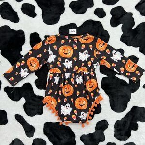 Super cute pumpkin and ghost print Halloween romper with matching bow!