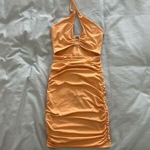 NWOT Babyboo Annetta Mini Dress Tangerine XS Bodycon Cutout Ruched Zip Back Dres