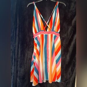 🩷NWOT- Backless Striped Deep V Colorful Striped Maxi Halter Dress🩷 SZ L