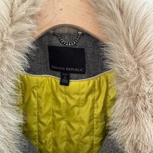 NWOT Banana Republic Faux Fur Plaid Check Moto Jacket Coat Size Petite Small
