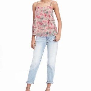 NWOT Banana Republic Floral Print Tiered Ruffle Tank Top Pink - Size S