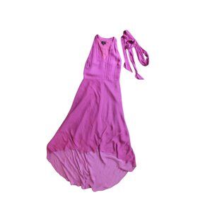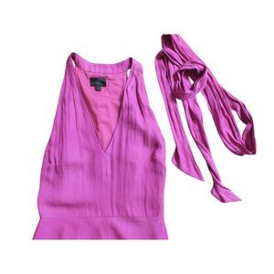 NWOT Banana Republic Mauve Silky High Low V Neck Maxi with Scarf/Tie Side Zip 4