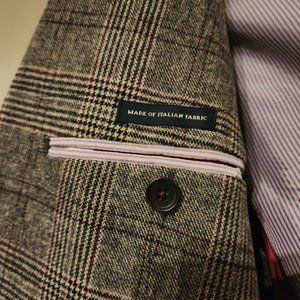 This Banana Republic Men's Sport Coat in brown plaid is a versatile addition to any wardrobe. Made from Italian cotton fabric, the tailored fit and single-breasted cut give it a stylish look suitable for travel, parties, business meetings, or casual wear.