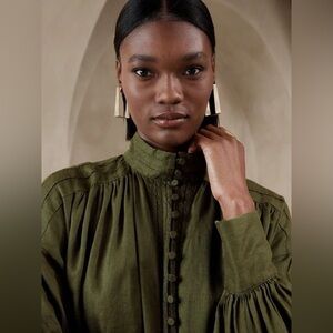 NWOT! Banana Republic Waimea Olive European Linen Mini Dress - Size Small⭐️