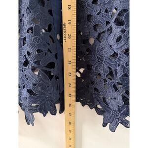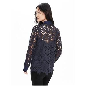 NWOT Banana Republic Womens Open Floral Lace Preppy Button Navy Blouse Large