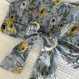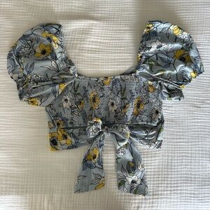 NWOT Band of Gypsies BOG Large Wrap Front Bow Cap Sleeve Blue Floral Crop Top