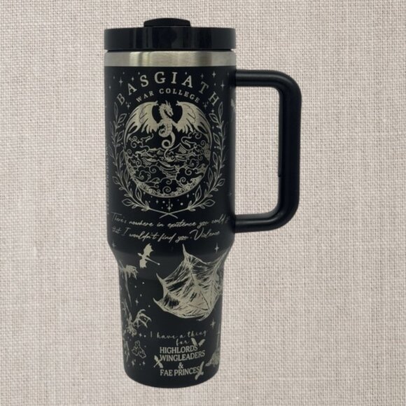 NWOT Basgiath War College 4th Fourth Wing Dragon Rider Black Silver 40oz Tumbler