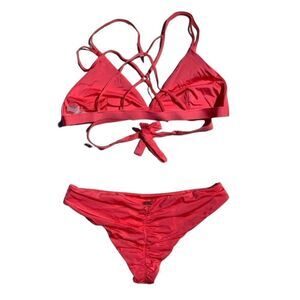 NWOT Beach Bunny Bikini top Large bottom Small coral orange or pink scrunch butt