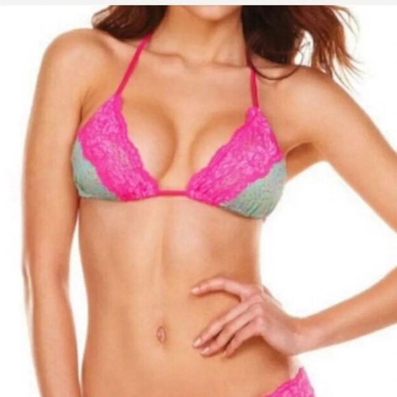 NWOT Beach Bunny TOP Lady Lace Triangle Pink size XS