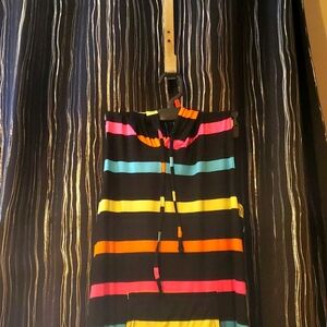 NWOT Beach Covered Up Hooded Lightweight Rainbow Striped Summer Dress Pockets