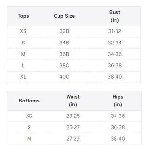 PLEASE NOTE THE TWO DIFFERENT SIZES: Size Small Eva top and Size Medium Emmy bottoms.