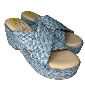 NWOT Beach by Matisse Vegan Reflection Blue Raffia Platform Slide Sandals size 7