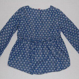 Beautees Girls Size L, Summer Dress, Blue with White Bowties & Hearts