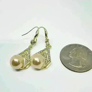 These earrings are absolutely gorgeous. They are stamped 925 and goldtone. The faux pearls are somewhat of a coral color.