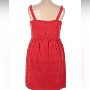 Sleeveless, Square, Fit & Flare Silhouette, embroidered detail, Orange, Red Knee Length
