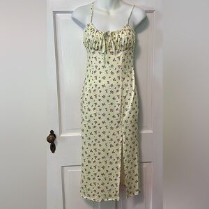 Silky dresses with beautiful flower bud pattern and slit up the front. Perfect for summer!