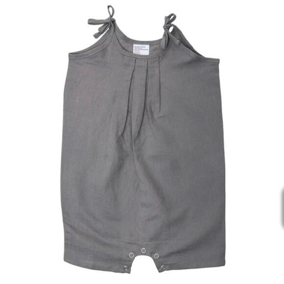 NWOT Beba Bean Box Pleat Linen Romper With Ties Size 6-12 Months In Color D Gray