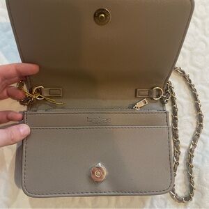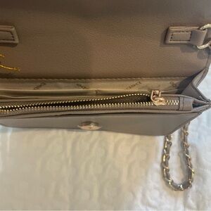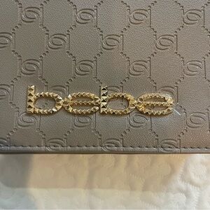 NWOT, Bebe Celia Monogram Flap Crossbody Purse in GRAY
