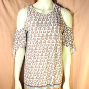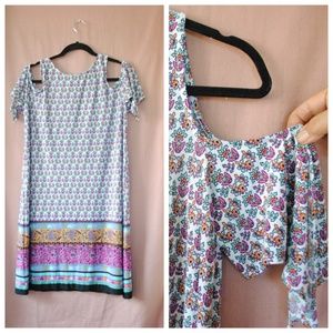 NWOT Beige by eci Boho Cold Shoulder Paisley Dress