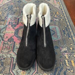 NWOT Bella Vita Cable faux suede faux sheerling zip up heeled ankle boots sz 9