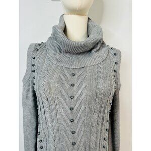 NWOT Bellini Gray L Cold Shoulder Knit Tunic Sweater Dress Turtleneck