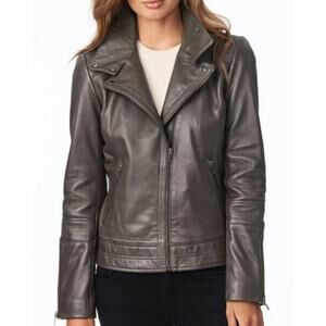 NWOT Bernardo Leather Moto Jacket in Morning Fog Women's Medium