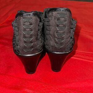 Step out in style with these elegant black peep-toe heels. Perfect for any occasion, these shoes offer both a stretchy mesh and sophistication. The woven design adds a unique touch to your outfit. New without tags-perfect!